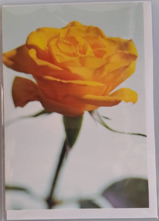 Een blanco kaart met een gele roos.