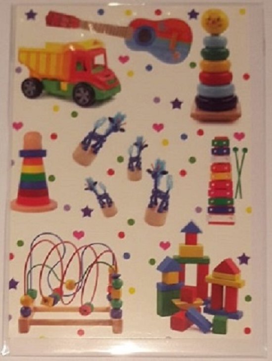 Een kleurrijke blanco wenskaart speciaal voor kinderen en kleuters.Voorzien van allerlei soorten speelgoed om mee te spelen.