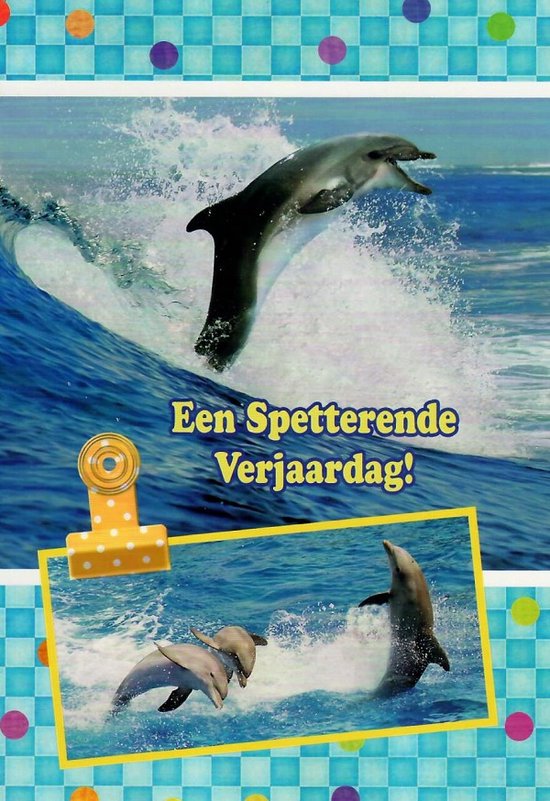 Een leuke kaart met een afbeelding van diverse dolfijnen.