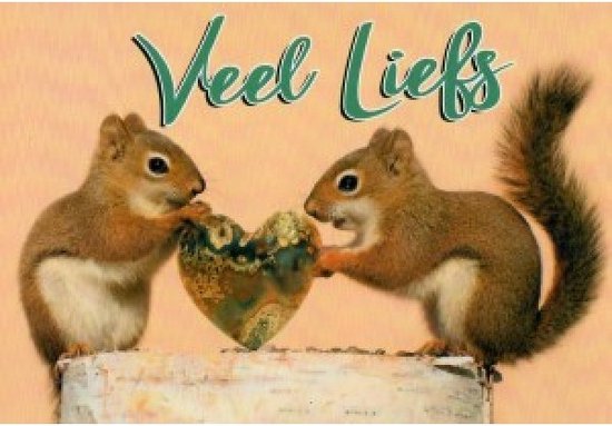 Een grappige kaart met twee eekhoorns die een hartje vasthouden.